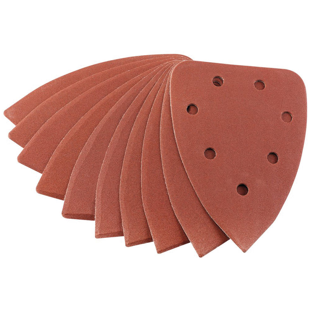 Aluminium oxide, hook and loop abrasive sanding sheets, fixed with 6 pre - punched 8mm holes. For use on Draper sanding machines and other manufacturerssimilar sanders. Supplied in packs of10 (Assorted Packs - 1 x 60g, 3 x 80g, 3 x 120g, 3 x 240g).