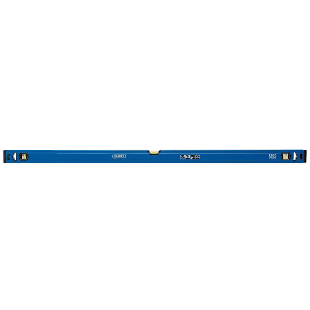 Box section levels made from high quality Aluminium with three permanently fixed shock resistant acrylic UV resistant vials, 300mm - one horizontal and one vertical vials, 600mm,900mm and 1200mm - one horizontal and two vertical vials, precision milled bottom. V - Groove for levelling pipework. All the levels are electrostatically epoxy powder coated and baked for maximum protection. Fitted with shock absorbing end caps. Accuracy of 0.5mm per 1M = 0.029° in standard position.