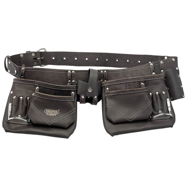 Expert Quality, oil tanned leather, reinforced with rivets and double stitched. Comprises two large pouches, knife holder, two hammer loops, two nail pouches, measuring tape holder and four screwdriver holders. Supplied with fully adjustable 50mm wide belt. Packed in polythene bag with insert card.