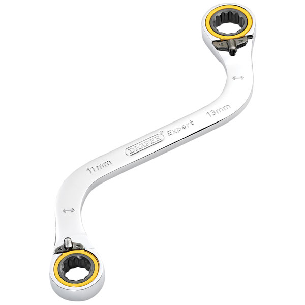 The 100-tooth ratchet enables 3.6° movement along with the S-shape means these spanners are ideal for use where there’s limited space, and the curved shape makes it easier to reach round obstacles.