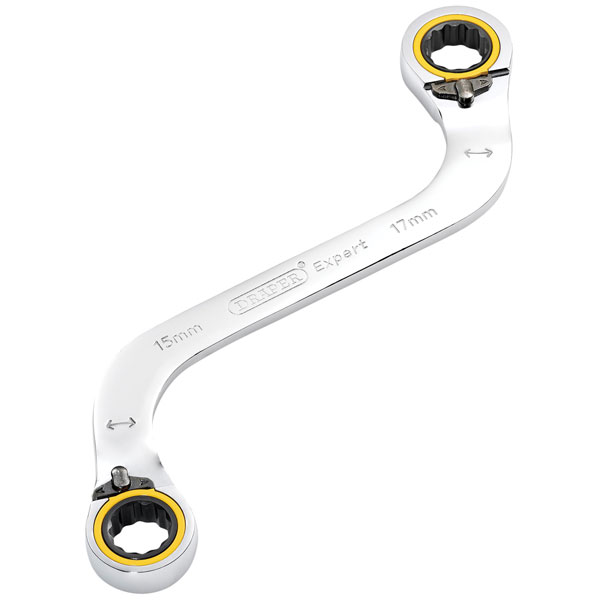 This 15 x 17mm Draper Expert HI-TORQ® double ring ratchet half moon spanner is manufactured from hardened and tempered chrome vanadium steel, with a mirror chrome plate finish for corrosion protection.