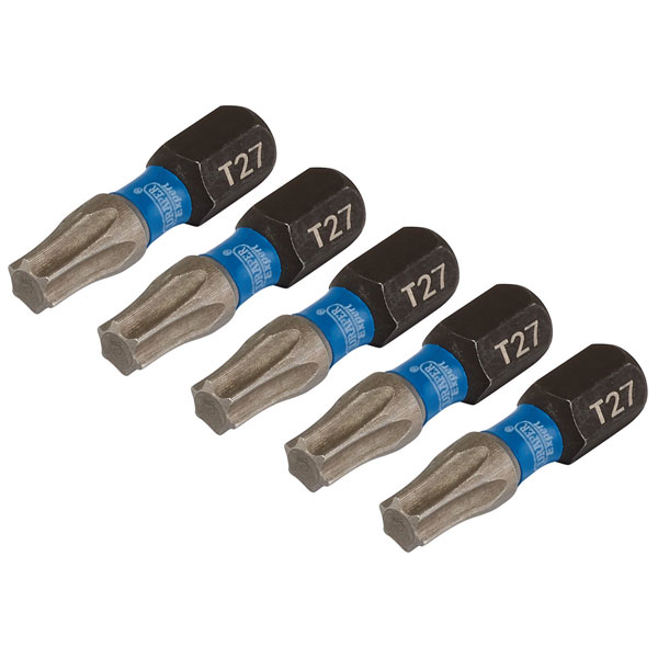 These T27 Draper TX-STAR® impact screwdriver bits are made from S2 steel, which is correctly hardened and tempered for durability and long life.