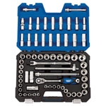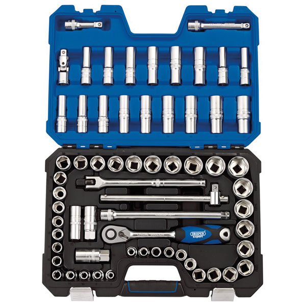 Expert Quality, six point sockets made from chrome vanadium steel that's hardened and tempered with a micro satin finish. Each socket has a knurled ring for extra grip. Supplied with a 72 tooth reversible soft grip ratchet and accessories. Packed in a tough plastic storage case with soft grip handle.