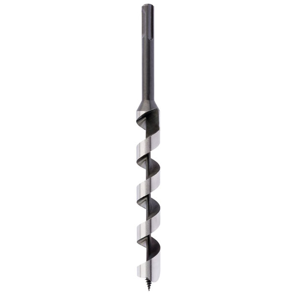 Expert Quality, with SDS+ type shank for power tools on all wood types. Precision machined for perfect concentricity from medium carbon steel and fully hardened. Unique flute spiral has an accurately ground and honed cutting edge on its entire length. Spur tip ensures accurate and positive drilling starts. Packed in hang up plastic tube.