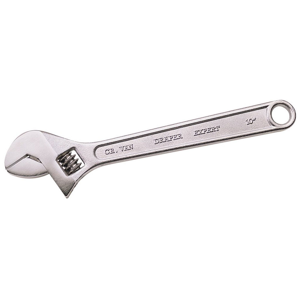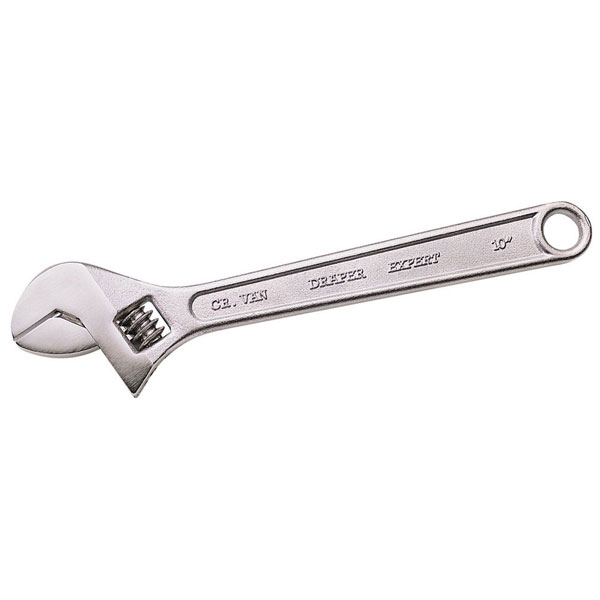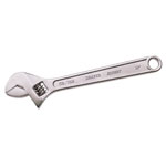 An Expert Quality, crescent-type wrench manufactured from chrome vanadium steel hardened, tempered and chrome plated with mirror polished jaws offset at 22°.