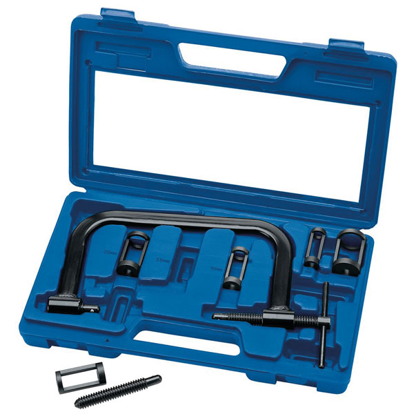 Expert Quality, variable assembly design allows use of this tool on most cylinder heads including motorcycles, small plant machinery and marine engines. Includes five valve cups, pressure winding handle and accessories. Throat depth 110mm. Packed in blow mould case with display sleeve.