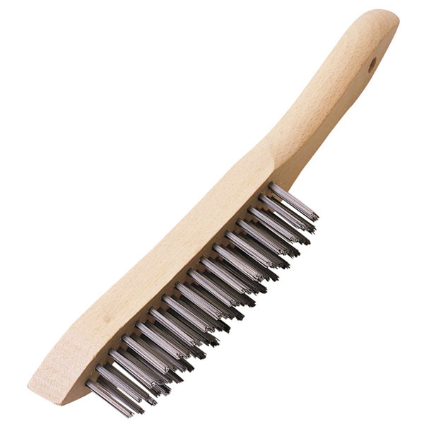 Expert Quality, industrial wire scratch brushes with wooden stock incorporating a hang hole. Sold loose.
