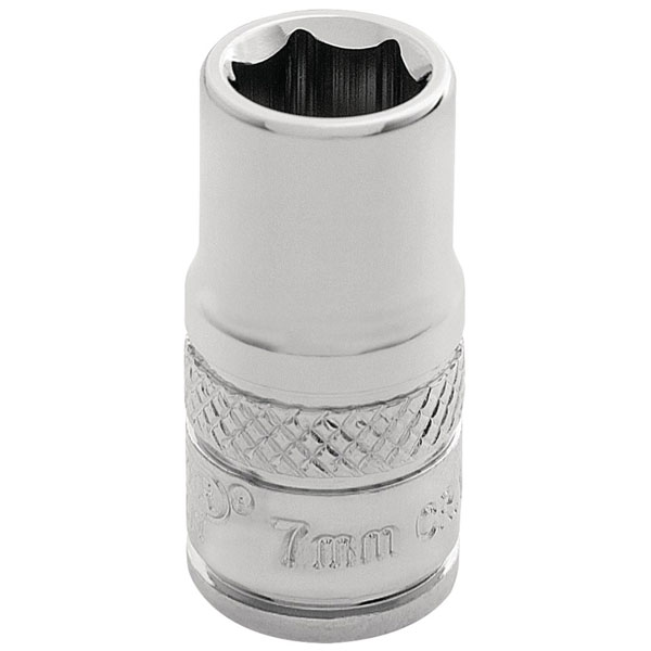 Expert Quality, 6 point sockets manufactured from chrome vanadium steel that's hardened and tempered with a polished finish. Each socket has a knurled ring for extra grip. Display packed.