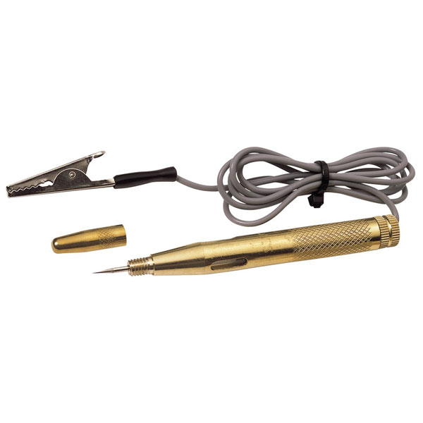 Expert Quality, tester with solid brass body housing a test light. Insulation piercing contact point with protective screw cap. Testing range 6 - 24V DC Supplied with 650mm of insulated cable with crocodile clip. Display packed.