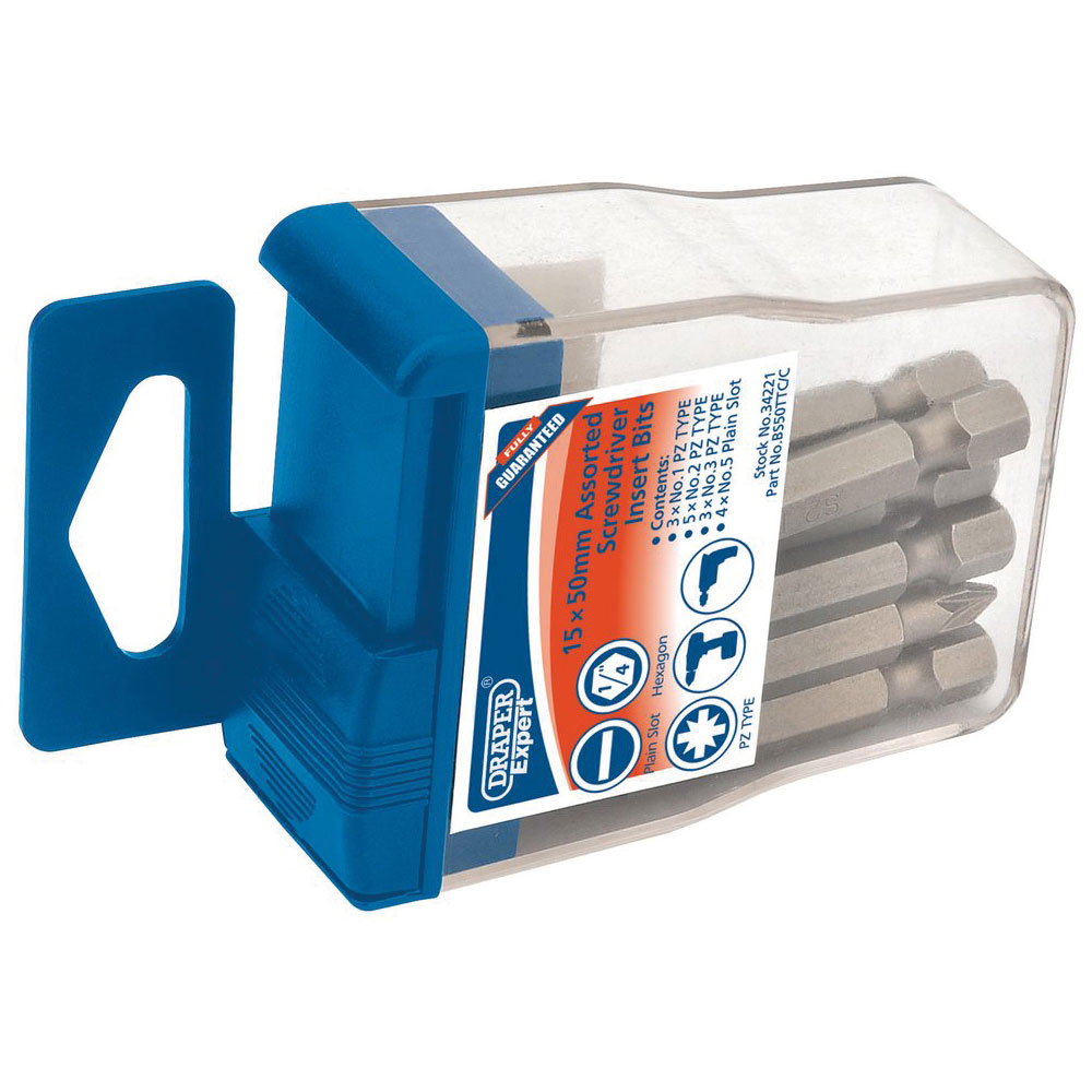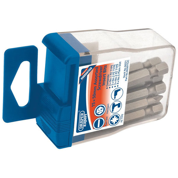 Expert Quality, assorted bit types 50mm long manufactured from S2 steel in unique plastic storage case. Display packed.