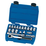 Expert Quality, socket set manufactured from chrome vanadium steel hardened, tempered, chrome plated and polished for corrosion protection. The unique hollow socket technology of the Draper Expert VORTEX ratchet and sockets is ideal for long fixings. The sockets are edge driven. This allows a fixing to pass through the head and avoid the depth restriction of conventional sockets and ratchets. Packed in blow mould carrying case and display sleeve.