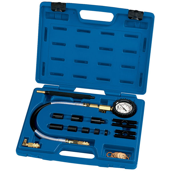 Expert Quality, allows the compression of commercial diesel engines (direct or indirect fuel injection) to be tested by cranking. Large easy-to-read scale measuring 0-1000psi/0-70kg/cm² with 600mm of flexible hose and push on adaptor incorporating a Schrader one way valve. Side pressure relief valve allows rapid retesting. Display packed in plastic blow mould storage case with sleeve.