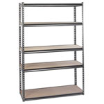 Heavy-duty and robust steel shelving unit with five adjustable shelves.