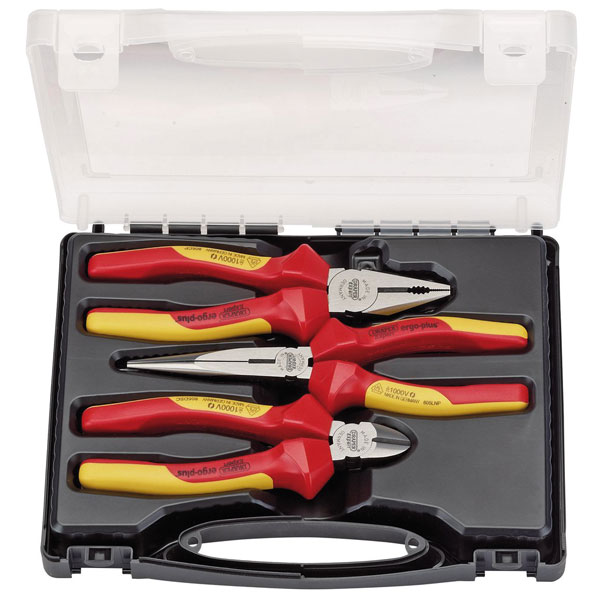 Expert Quality, special steel hardened and tempered with cutting edges separately induction hardened. Ergonomic soft grip handles provide improved performance. Each plier has been tested to 10,000V for safe 1000V AC or 1500V DC live line working. Display packed in blow mould case with see - through lid.