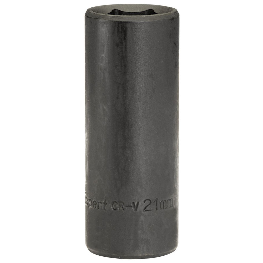 A deep 6-point socket forged from chrome vanadium steel that has been hardened, tempered and chemically blackened for corrosion protection.