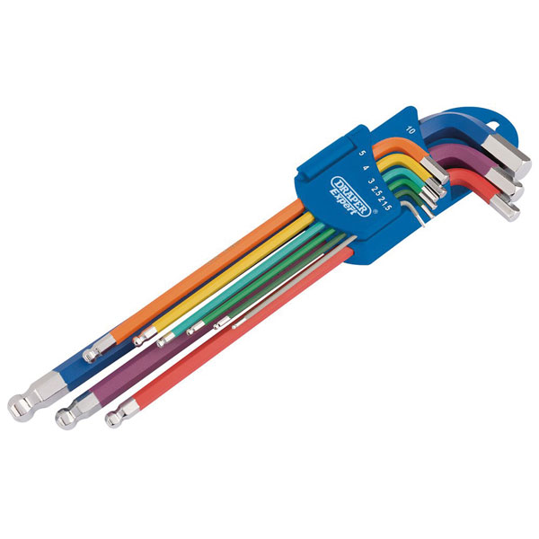 Draper Expert 66134 Metric Coloured Extra Long Hexagon & Ball End Key Set (9 Pc)