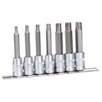 Expert Quality, suitable for use on Fiat, Lancia, Alfa-Romeo and many other applications. Sockets manufactured from chrome vanadium steel hardened, tempered and chrome plated. The M6-M10 bits are made from S2 steel and the M12-M14 bits from 6150H steel hardened and tempered both with shot blast finishes. Supplied on socket rail. Display packed.