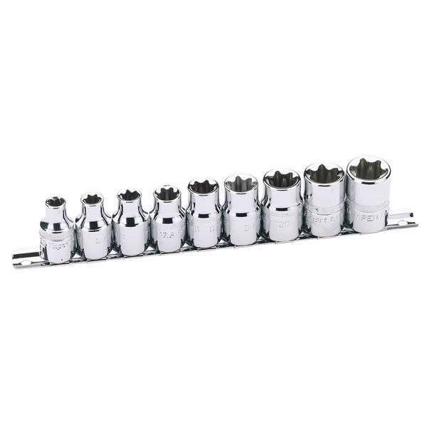 Draper Expert 67114 9 Piece 1/2" Sq Dr Tx-star Socket Set On Socket Rail