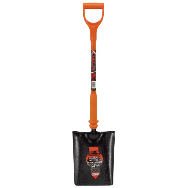 Expert Quality, fully insulated taper mouth shovel designed for working on or near live cable and wires. Individually tested to 10,000 volts, guaranteeing safe working on 1,000V and complying to the BS 8020: 2011 standards. Manufactured with an epoxy fibreglass core and attached to a fully enclosed insulated shaft with hand slip guard. Each shovel is supplied with a certificate of conformity, which correlates with a unique traceability number embossed on the shaft. Sold loose.