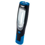 A blue Draper Expert LED inspection lamp, perfectly suited to a host of industries, especially in the automotive sector. The lamp is fitted with a COB (Chip On Board), side-facing LED producing an impressive 350 lumens and a 1W LED on one end that delivers 80 lumens. The lamp is also fitted with three Ultra Violet LEDs enabling detection of leaks on cooling systems and air-conditioning systems, etc.