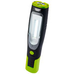A green Draper Expert LED inspection lamp, perfectly suited to a host of industries, especially in the automotive sector. The lamp is fitted with a COB (Chip On Board), side-facing LED producing an impressive 350 lumens and a 1W LED on one end that delivers 80 lumens. The lamp is also fitted with three Ultra Violet LEDs enabling detection of leaks on cooling systems and air-conditioning systems, etc.