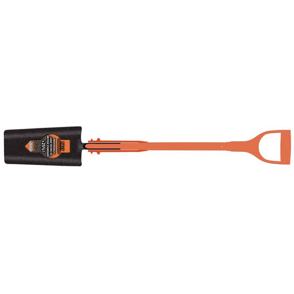 Expert Quality, fully insulated cable laying shovel designed for working near live cable and wires. Individually tested to 10,000 volts, guaranteeing safe working on 1,000V and complying to the BS 8020 standards. Manufactured with an epoxy fibreglass core and attached to a fully enclosed insulated shaft with hand slip guard. Each shovel is supplied with a certificate of conformity, which correlates with a unique traceability number embossed on the shaft. Sold loose.
