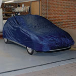 A high quality Nylon car cover with easy to fit elasticated corners and door access panel. Water repellent nylon. Integral storage holdall. Display packed.