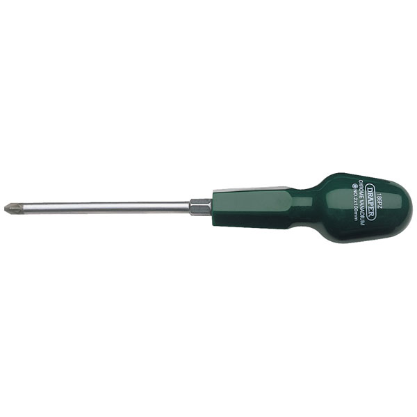 These Draper cabinet pattern handled screwdrivers have chrome-vanadium steel blades that have been correctly hardened and tempered, and have sand-blasted tips.