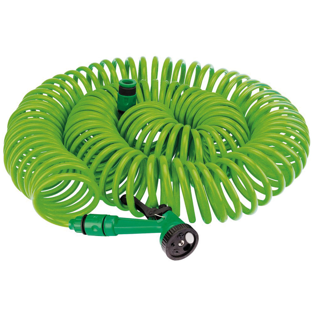 Hose kits comprising 10m or 30m (working lengths) 3/8" diameter recoil hose, 1/2" tap connector and five pattern spray gun. Display packed.