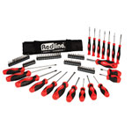 A comprehensive 89-piece screwdriver set containing a wide variety of screwdrivers with hardened and tempered chrome vanadium steel blades and soft grip handles, plus a bit holder with 68 ¼in. hex CRV screwdriver bits.