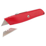 Retractable pattern metal bodied knife complete with two blades. Display packed.