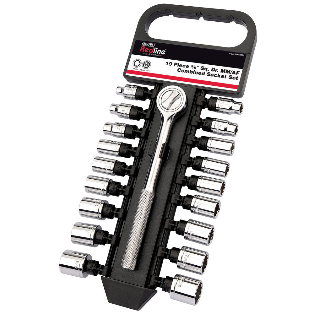 Draper Redline 68928 3/8" Sq. Dr. MM/AF Combined Socket Set (19 Piece)