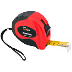 A 7.5m / 25ft. feature-packed metric / imperial measuring tapes with soft grip plastic case, belt clip, power return blade, wrist strap and locking button.