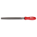 High carbon steel, hardened and tempered second cut file with moulded plastic handle. Display packed.
