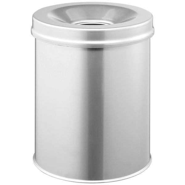The Durable 330523 waste paper basket has a capacity of 15 litres and features a self-extinguishing design. Constructed from steel with a silver finish, it measures 260 mm in diameter and 357 mm in height. Ideal for offices and public spaces, this bin offers increased safety against fires.