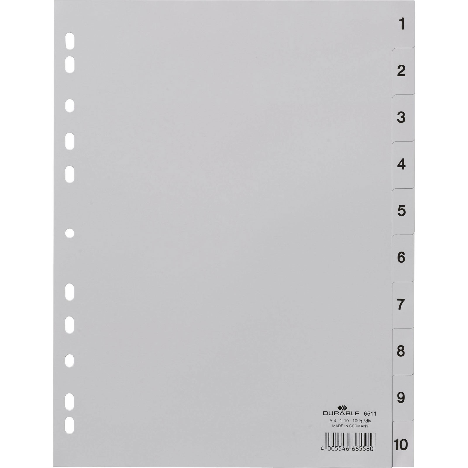 Durable 651110 Index A4 Polypropylene Grey 10 Embossed Tab Dividers