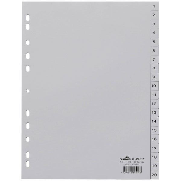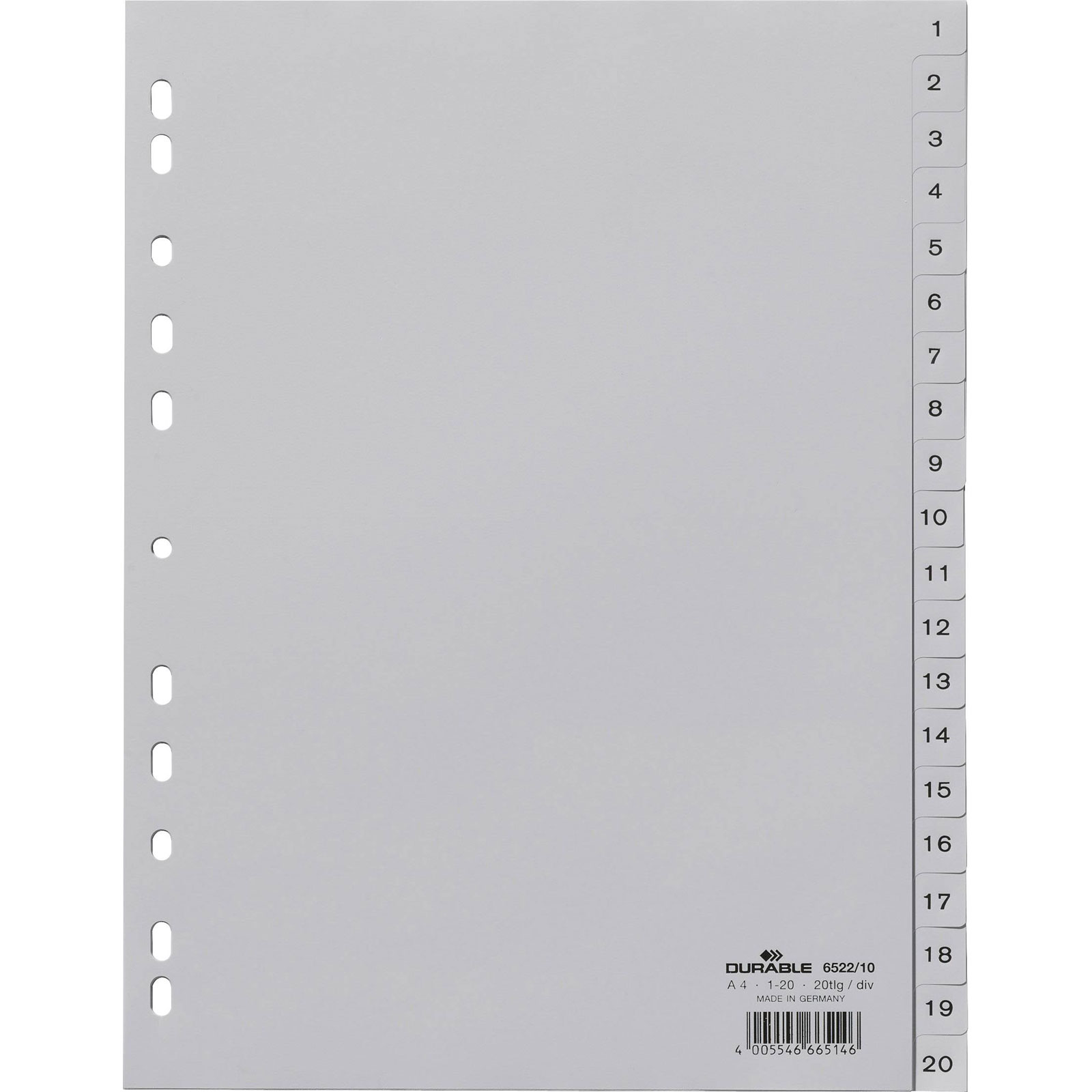 Durable 652210 Dividers A4 1-20 Polypropylene Grey Embossed Tabs