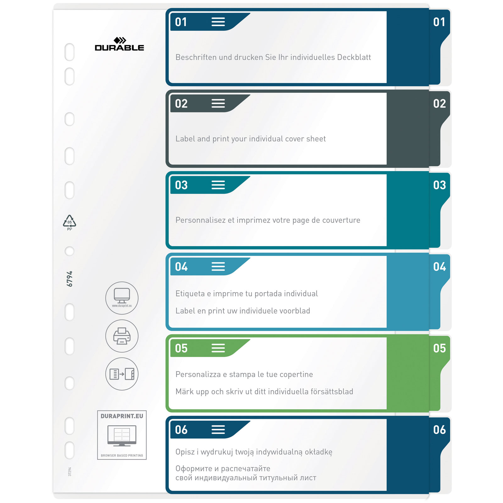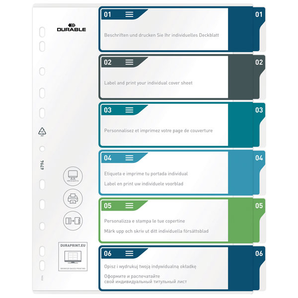 Durable 679427 Index A4+ 1-6 Multicolour 6 Dividers For Organised Filing