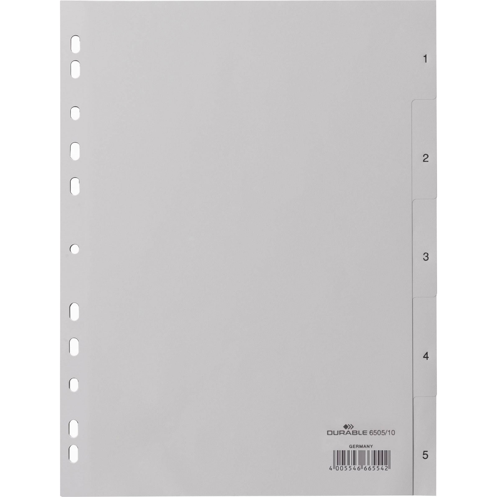 Durable 650510 Index A4 Dividers Grey Polypropylene 5 Embossed Tabs
