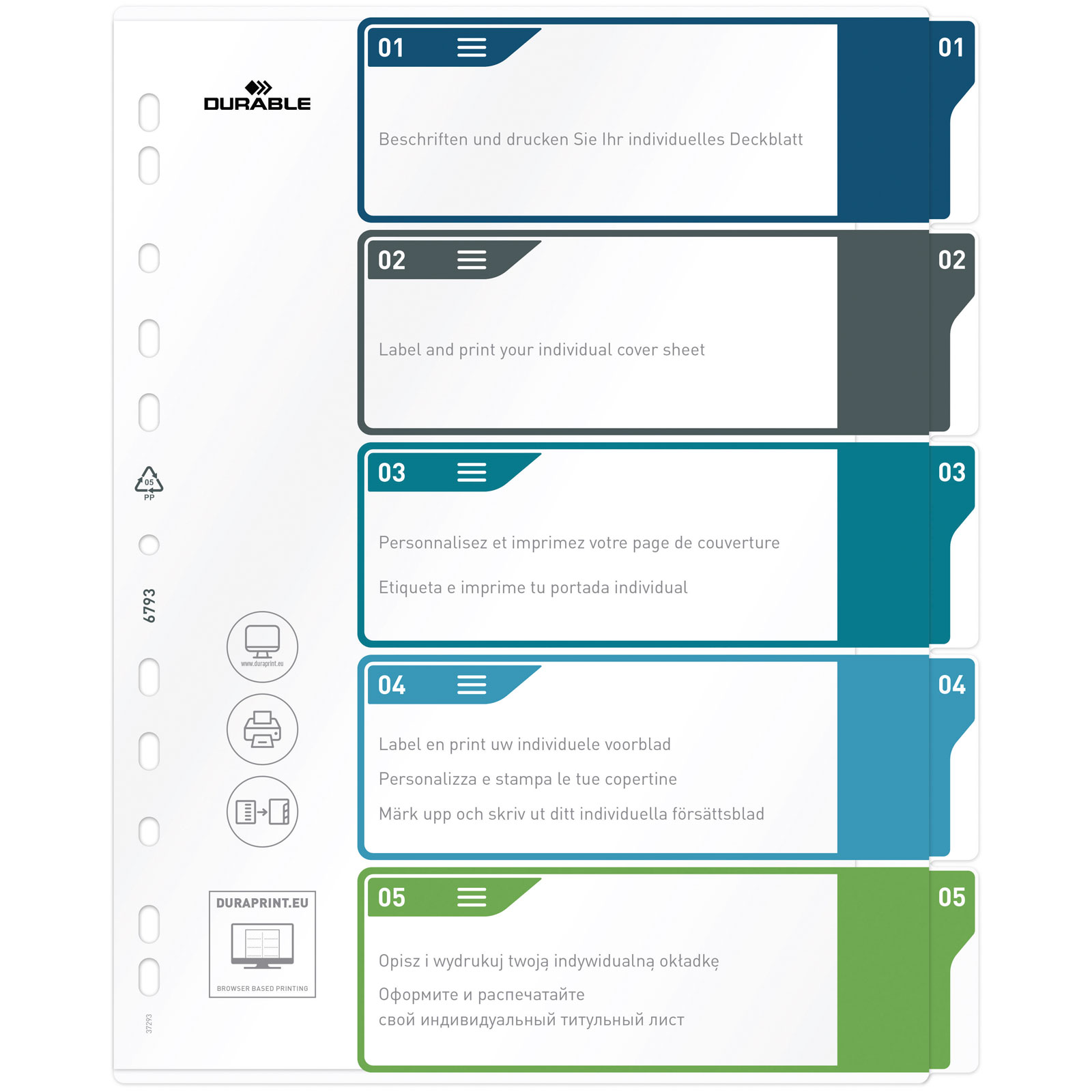 Durable 679327 Index A4+ 1-5Multicolour 5 Dividers Filing Folder