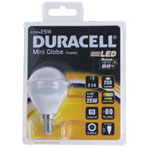 The Duracell 4W Mini Globe Bulb Frosted Warm White 250lm SES (E14) cap represents the latest in light technology – not only does it shine brighter than the old type of LED energy saver, but also has an 85% less energy usage than a standard bulb, plus an average 15,000 hour lifespan.