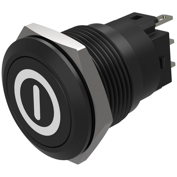 EAO Momentary 22mm Black Flush no LED Solder Terminals On/Off - manufacturers part number 82-6951.1000.1304. EAO push button switches control the action in a piece of machinery or a particular process. Commonly used within the workplace and home, push button switches are usually constructed from metal or plastic, which should be a consideration when you are choosing a product for your specific application.