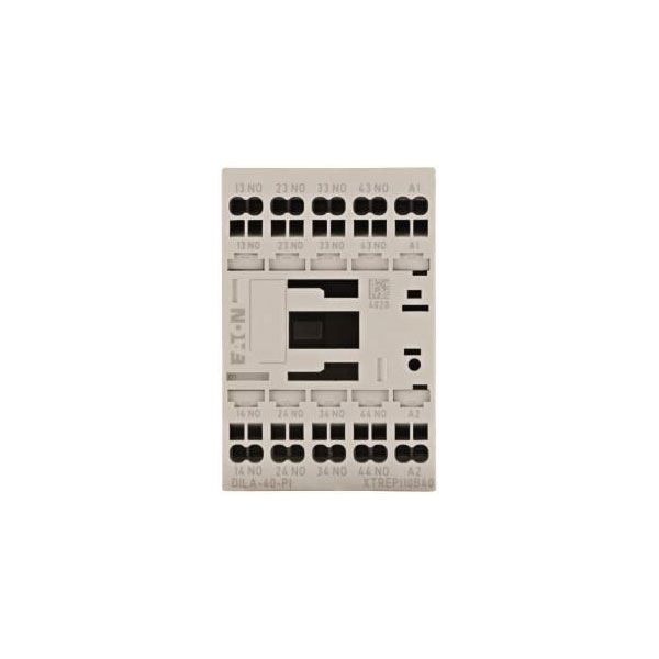 Eaton's DILA-40(24VDC)-PI is an auxiliary contactor designed for high-performance electrical applications, handling up to 4 A. This compact contactor is ideal for control circuits requiring reliable switching and is often used in industrial and commercial environments. It operates efficiently with a 24 VDC input, making it suitable for various automation systems.