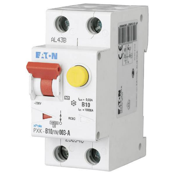 Eaton manufactures the RCBO, model number 236962, designed for electrical safety applications. This device features a 10 A current rating, a 0.03 A residual current, and operates at 240 V AC. It is typically used in residential and commercial installations to provide circuit protection and prevent electrical faults.