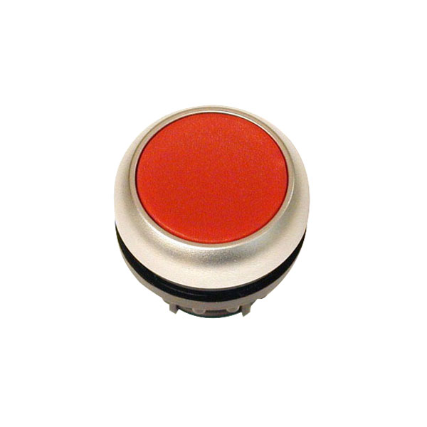 This pushbutton actuator with flush red plate is part of the RMQ-Titan system of pilot devices from EATON.