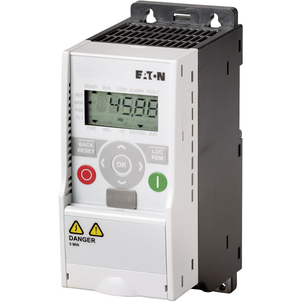 The Eaton MMX34AA5D6F0-0 is a 3-Phase Frequency Inverter (Article No. 121402) from the M-Max™ Series that allows a continuously variable speed control of three-phase asynchronous motors. The inverter is specially suited for applications in which ease of handling and cost effectiveness have a high priority.