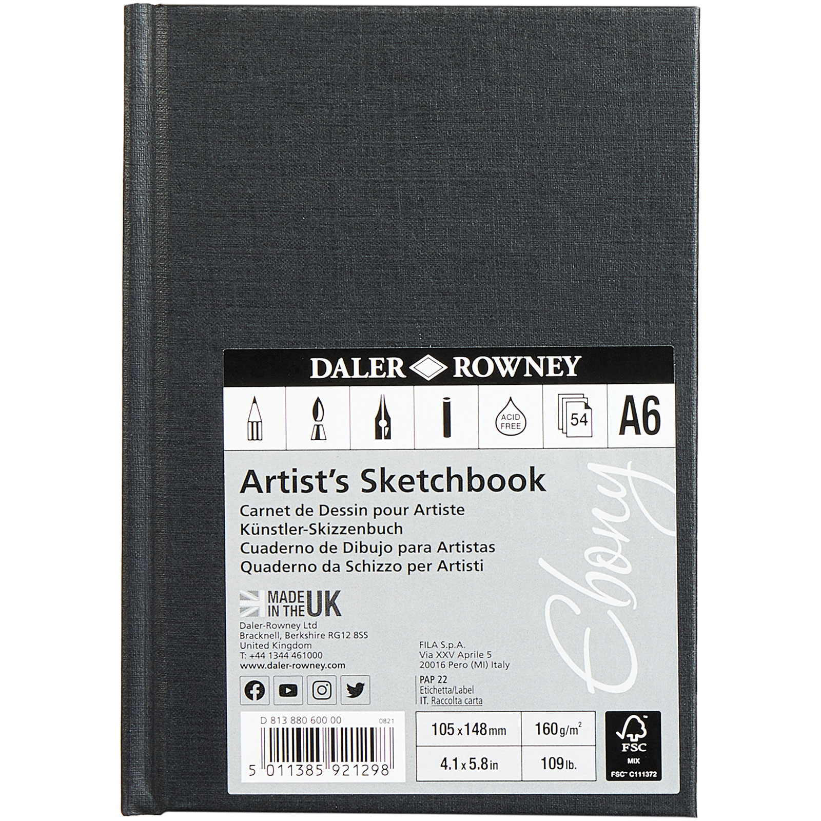 Made in the UK. The Daler-Rowney Ebony sketchbook range features a comprehensive selection of hardback sketchbooks in a variety of practical sizes and styles, perfect for students and professional artists alike.