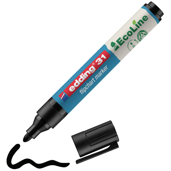 Edding 4-31001 is a flipchart marker designed specifically for use on paper, featuring a round tip that provides a line width between 1.5 to 3 mm, making it ideal for creating clear, precise lines in professional presentations and educational settings. The black ink is formulated to be low-odour and quick-drying, which ensures minimal smudging and clean usage in confined spaces. This marker is particularly suited for engineering applications where accurate and detailed illustrations are required on flipcharts or sketch pads for project planning, brainstorming sessions, or technical presentations. The marker's design ensures comfortable handling, allowing for extended use without causing hand fatigue.