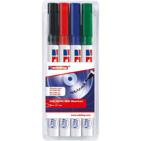 These bullet tip permanent marker pens from Edding have a fine nib and use a quick-drying smudge-free water-based ink which is ideal for marking CDs, DVDs etc.