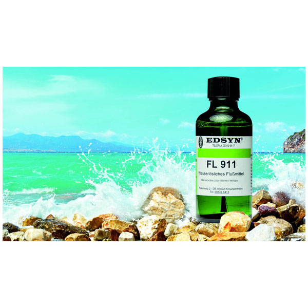 Edsyn's FL911 is a flux soldering liquid, content 50 ml, designed for precision in soldering applications. The product is known for its ability to improve wetting and reduce preparation time. It is typically used in electronics repair and assembly for enhancing soldering performance.